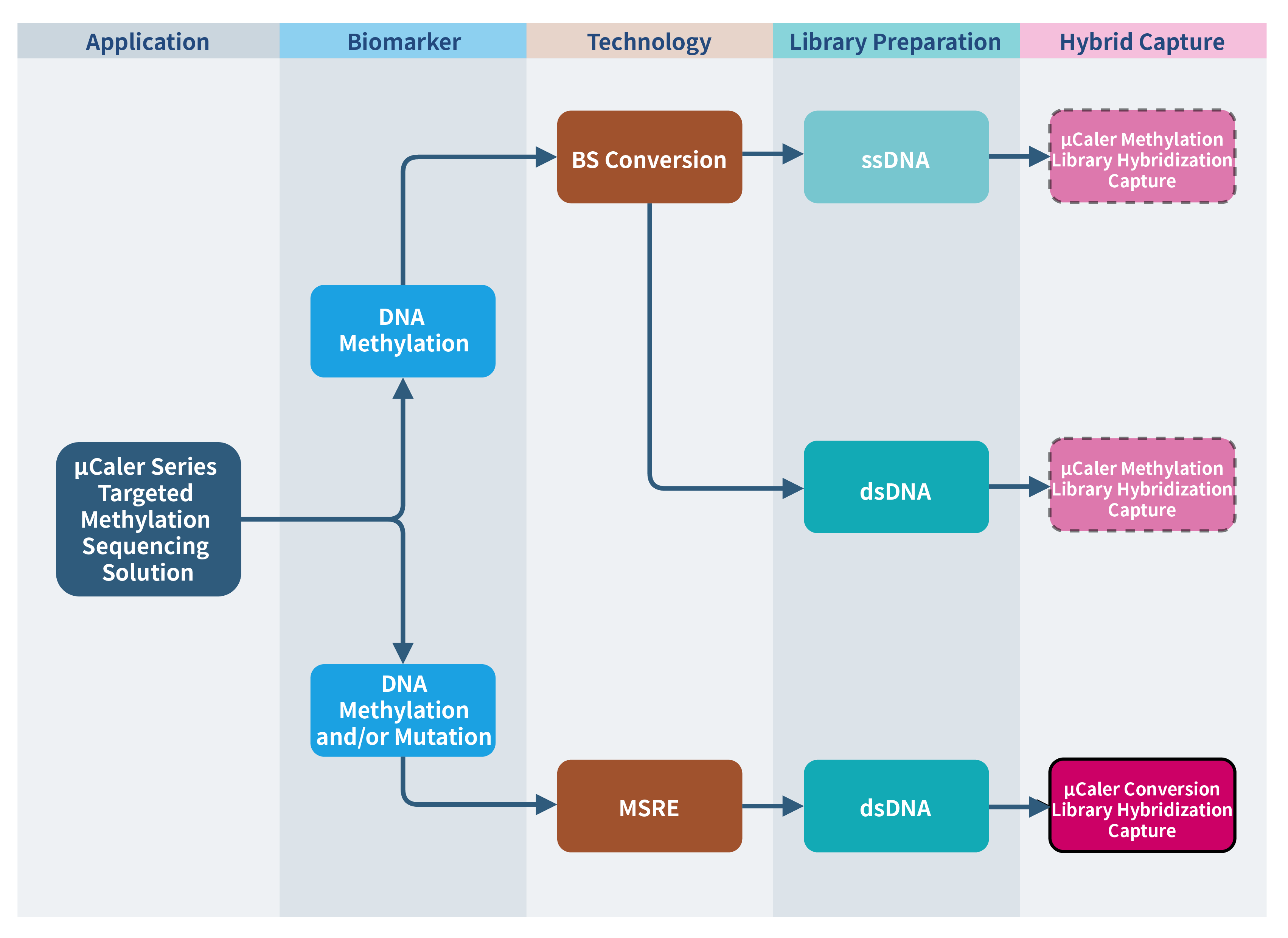 一图了解纳昂达 μCaler® 系列靶向甲基化测序方案