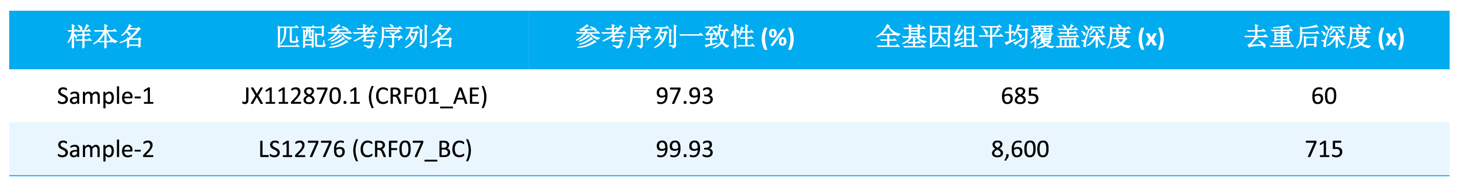 表 1. μCaler® HIV-1 Panel v1.0 对不同亚型的 HIV-1 毒株全基因组序列分析。